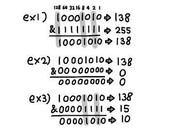 이 비트단위 and 연산을 이용하면 어떤 비트열의 특정 부분만 골라내거나, 0으로 만들 수 있는데