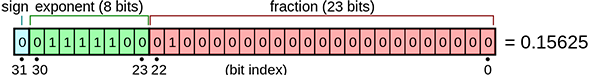 float 형 0.15625 는 0 01111100 01000000000000000000000 로 저장한다.